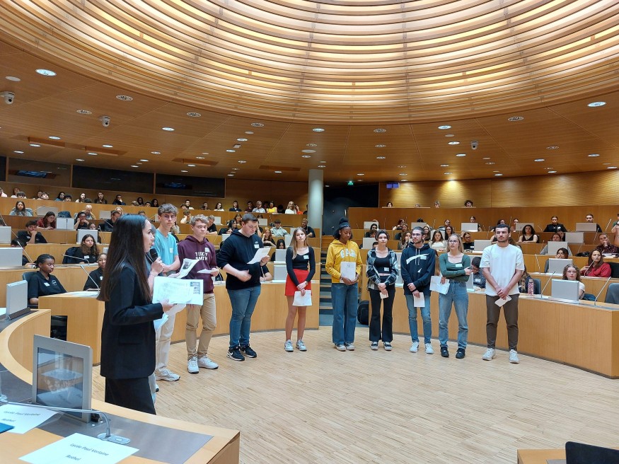 Lors de la journée de restitution qui a eu lieu le 13 mai dernier à l'hôtel de région à Strasbourg, les élèves ont témoigné de leur expérience mémorielle et ont présenté leurs projets pédagogiques.