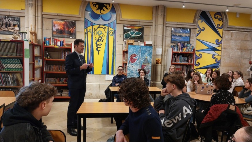Le préfet de la Meuse s'est rendu le 24 mars dernier à l'Ensemble Scolaire JeanPaul II, au lycée Saint Louis à Bar Le Duc pour échanger avec les élèves de Première HGGSP et SES.