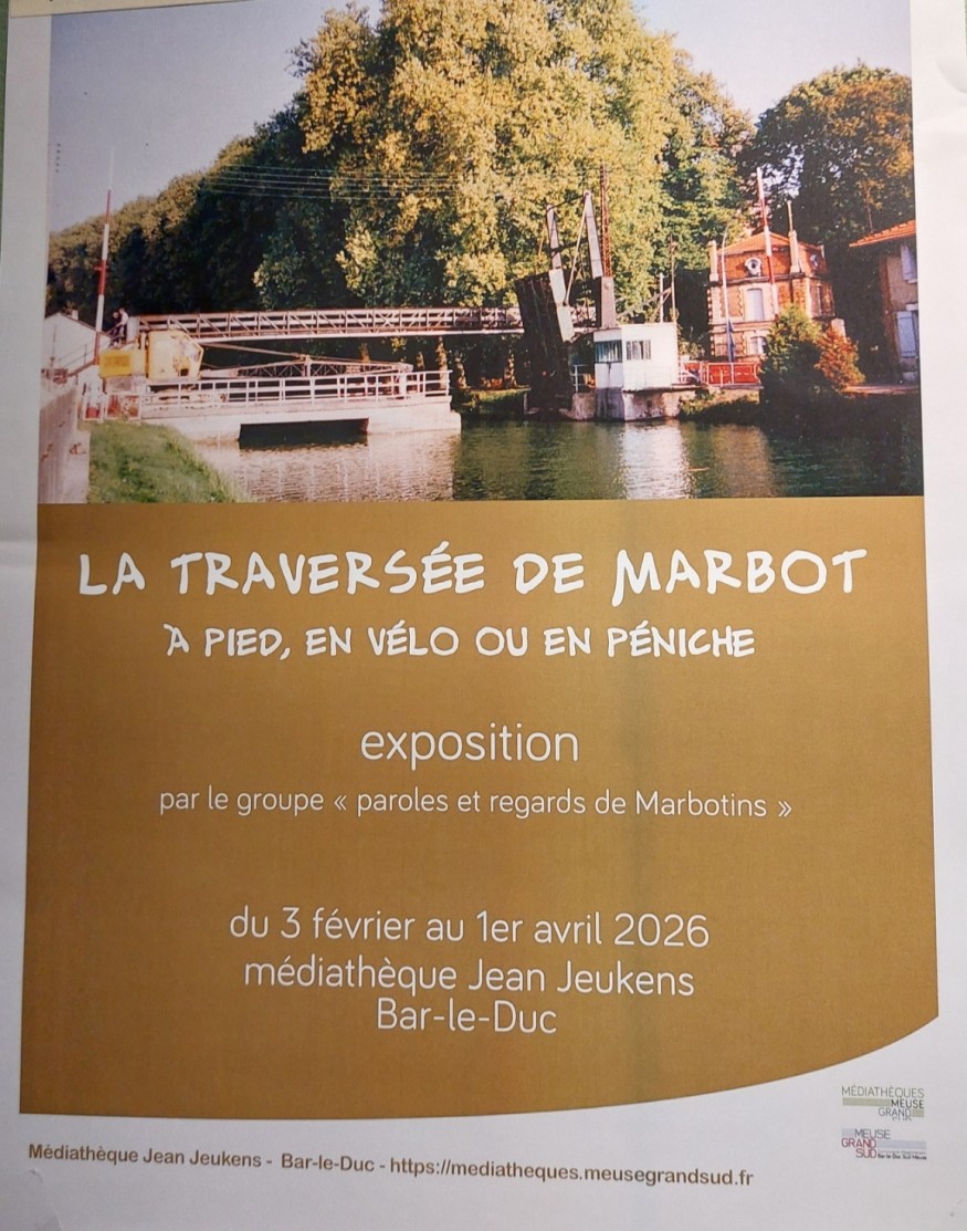 Une exposition intitulée « La traversée de Marbot » jusqu'a la fin du mois de Mars à la Médiathèque Jean Jeukens à Bar Le Duc, invite le public à explorer l’histoire locale à travers ses axes de communication majeurs, tels que le canal et l'ancienne voie romaine. Le collectif « Paroles et regards de Marbotins » du quartier de Marbot a rassemblé des documents d'archives et des témoignages d'habitants pour mettre en lumière aussi bien la vie quotidienne durant la Grande Guerre que le travail manuel colossal lié à la création des infrastructures hydrauliques.