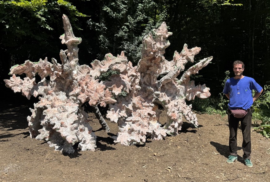 Imaginez des feuilles de chardon géantes qui s'extraient de la forêt... Vous êtes sur le Circuit des Trois Fontaines, face à l’œuvre numéro 264 intitulée « Chardons Ardents ». Son créateur, Vincent Cardoso, nous raconte l'histoire de ce bas-relief monumental une pièce unique façonnée grâce à la technique du moule à creux perdu.