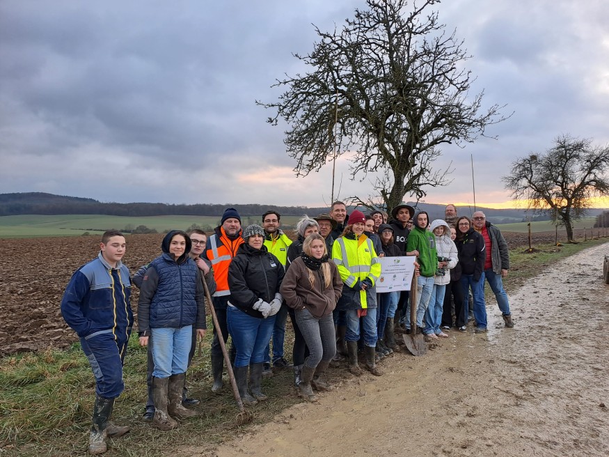 Cette action — l’une des plus importantes de ce type à l’échelle nationale — associe la commune d’Avocourt, l’association L’École Buissonnière, les Croqueurs de Pommes du Nord meusien, ainsi que des élèves de la MFR de Damvillers. Ensemble, ils ont contribué à la mise en terre de variétés anciennes de pommiers, poiriers, cerisiers et pruniers, sélectionnées pour offrir une floraison échelonnée favorable aux pollinisateurs.