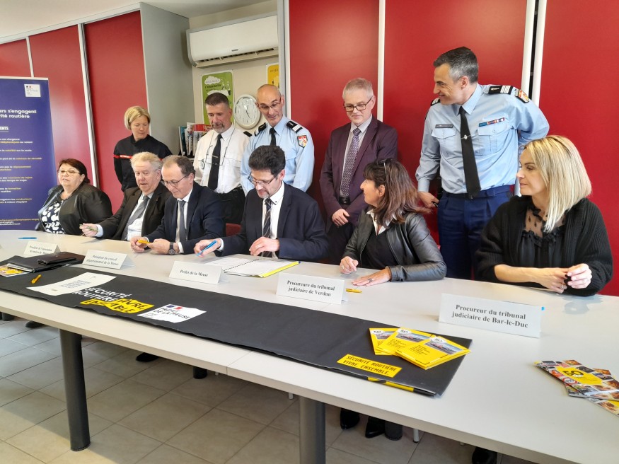 C'est dans ce contexte, pour faire diminuer le nombre d’accidents, de blessés et de morts, que le document général d’orientation (DGO) qui définit la stratégie de lutte contre l’insécurité routière pour les cinq années a venir (2023-2027) a été signé ce 11 Mai 2023 par le préfet ainsi que l’ensemble des acteurs meusiens de la sécurité routière (parquet, forces de l’ordre, association des maires et les partenaires associatifs).