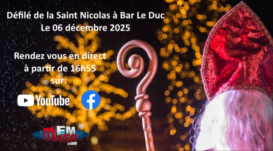 Revivez le défilé et le feu d'artifice de la Saint Nicolas à Bar Le Duc du 06 décembre 2025 ci dessous. Au programme, 8 compagnies, troupes et ensembles musicaux, 8 communes participantes, les jeunes sapeurs pompiers de la Meuse, Unis Cité, Le char de Saint Nicolas et du Père Fouettard.