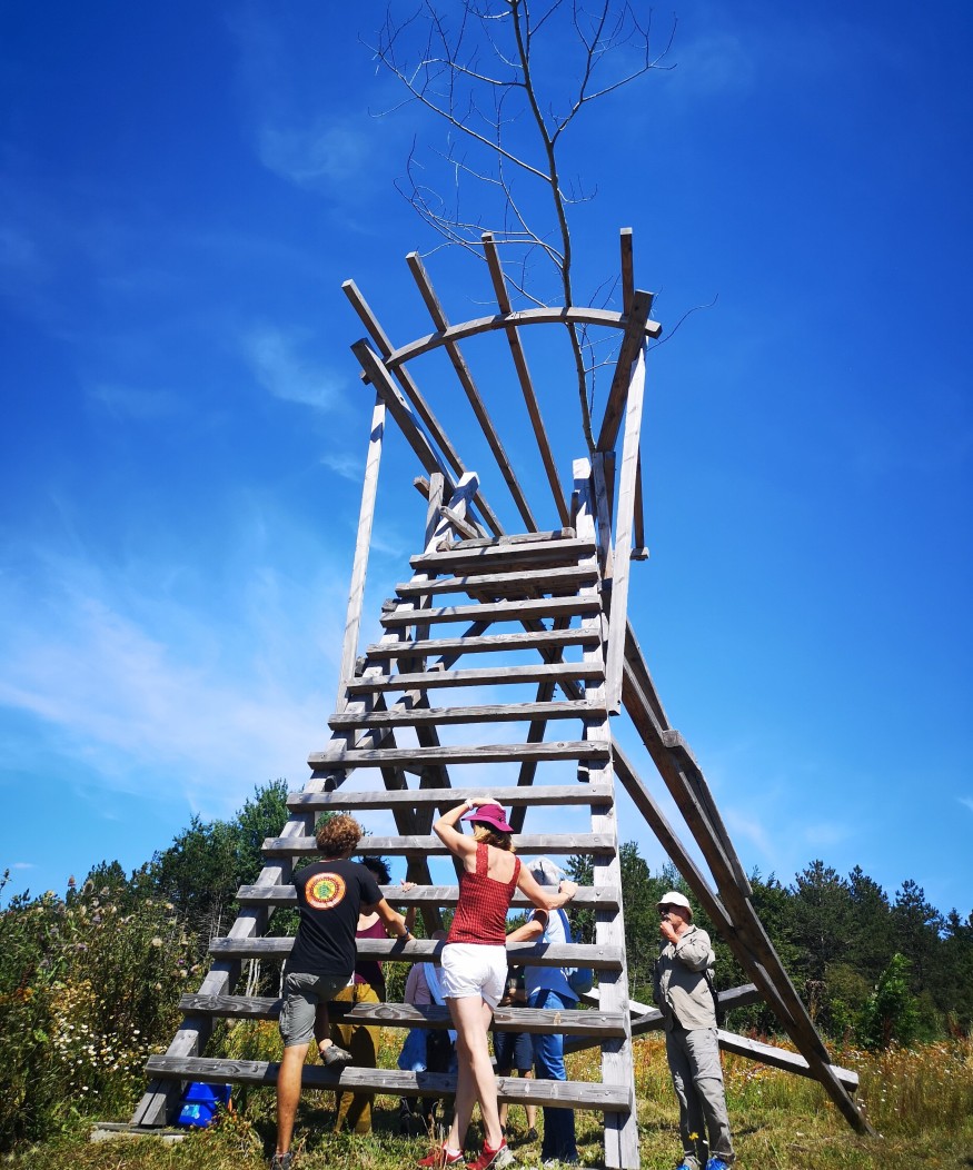 Vent des Forêts : Erik Nussbicker installe Tourelle d’Y Voir, une tour en pin Douglas de plus de 6 mètres de haut inspirée par les anciens guets de chasse. Offrant un point de vue unique sur la vallée de l’Aire, elle invite à la méditation et à la contemplation du paysage. Elle fait écho à l'oeuvre numéro 221, une autre Tourelle en bois de mélèze conçue par Erik Nussbicker pour les circuits du Gros Charme et de Louvent.